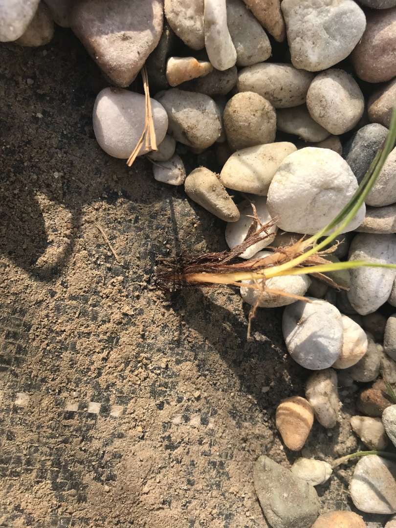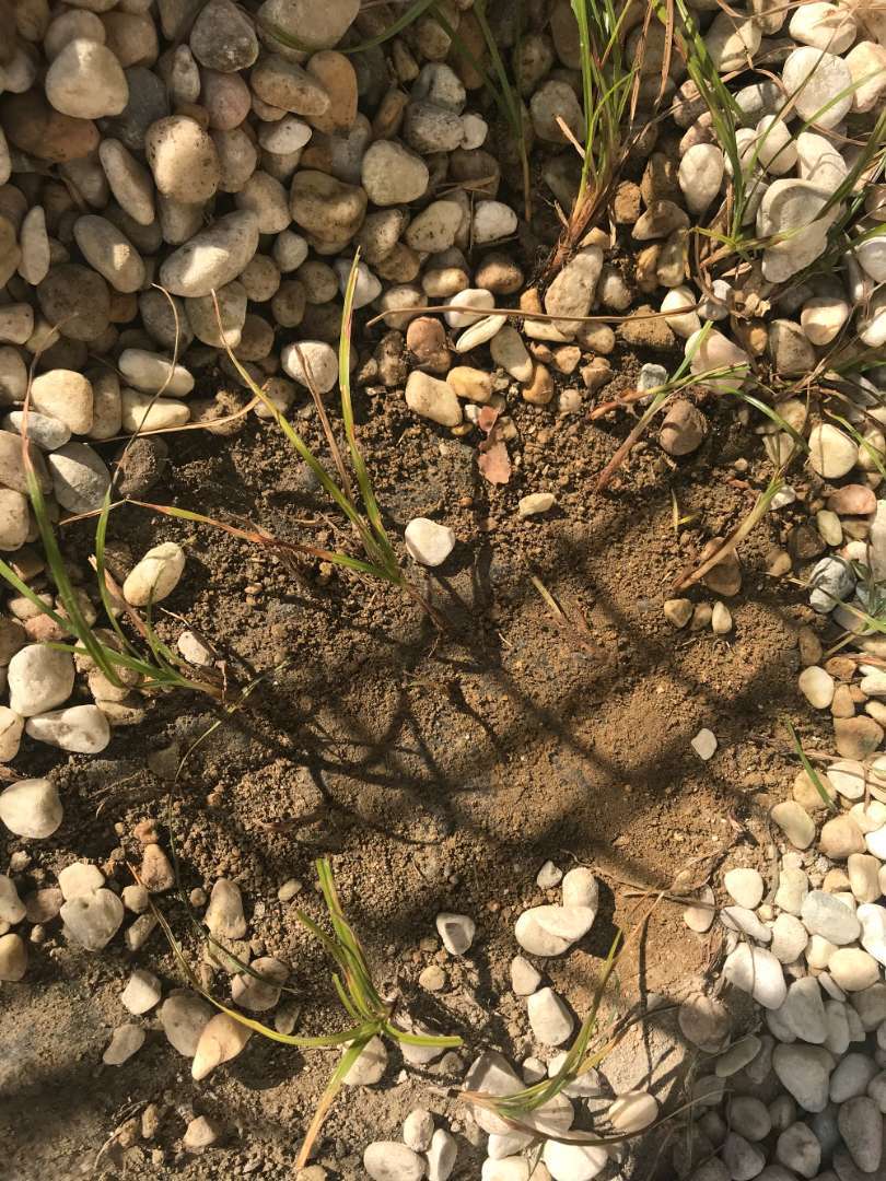 砂利のけてみるとシートを突き抜けて草が…