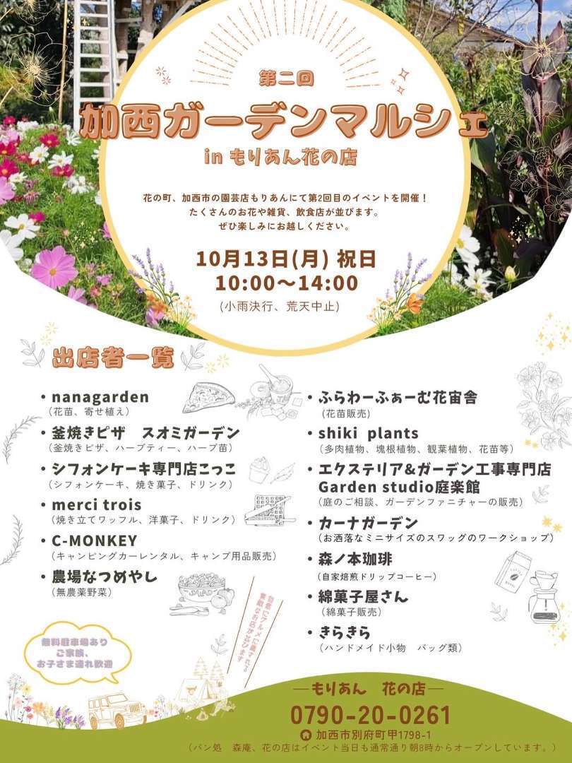 10月13日(月・祝)に、加西市の「もりあん花の店」さんで開催される