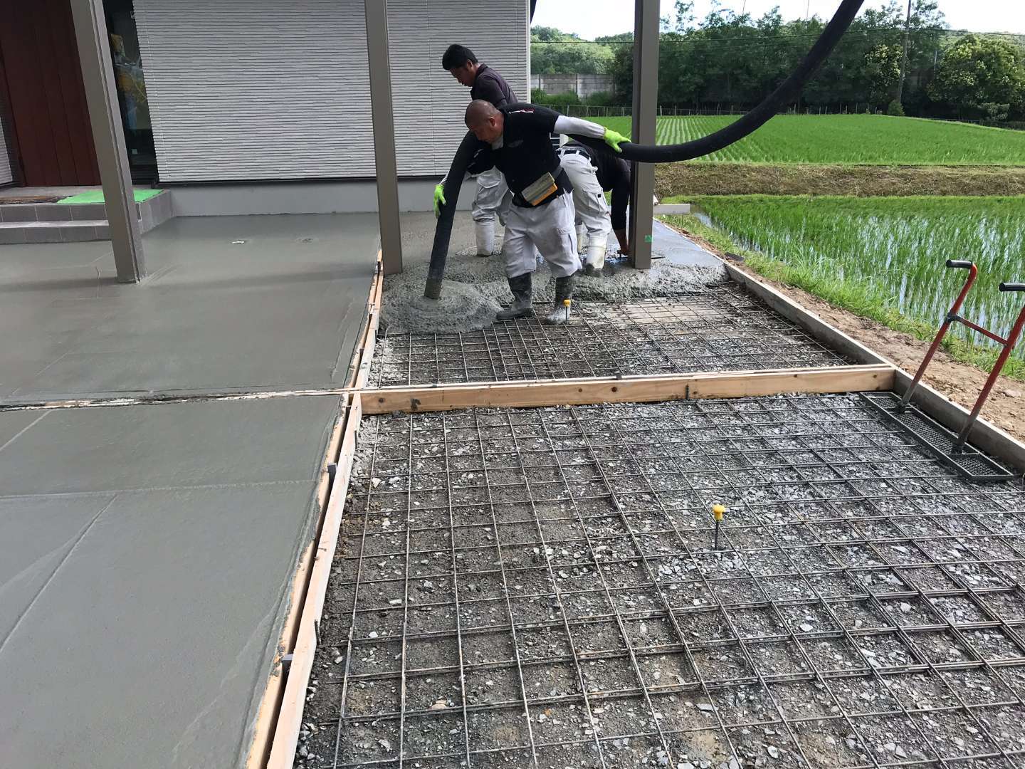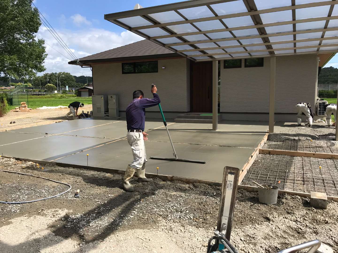 気温が高いとコンクリートが固まるのが早いので、職人さんも必死になって仕上げてくれます。暑い中本当にありがとうございます。