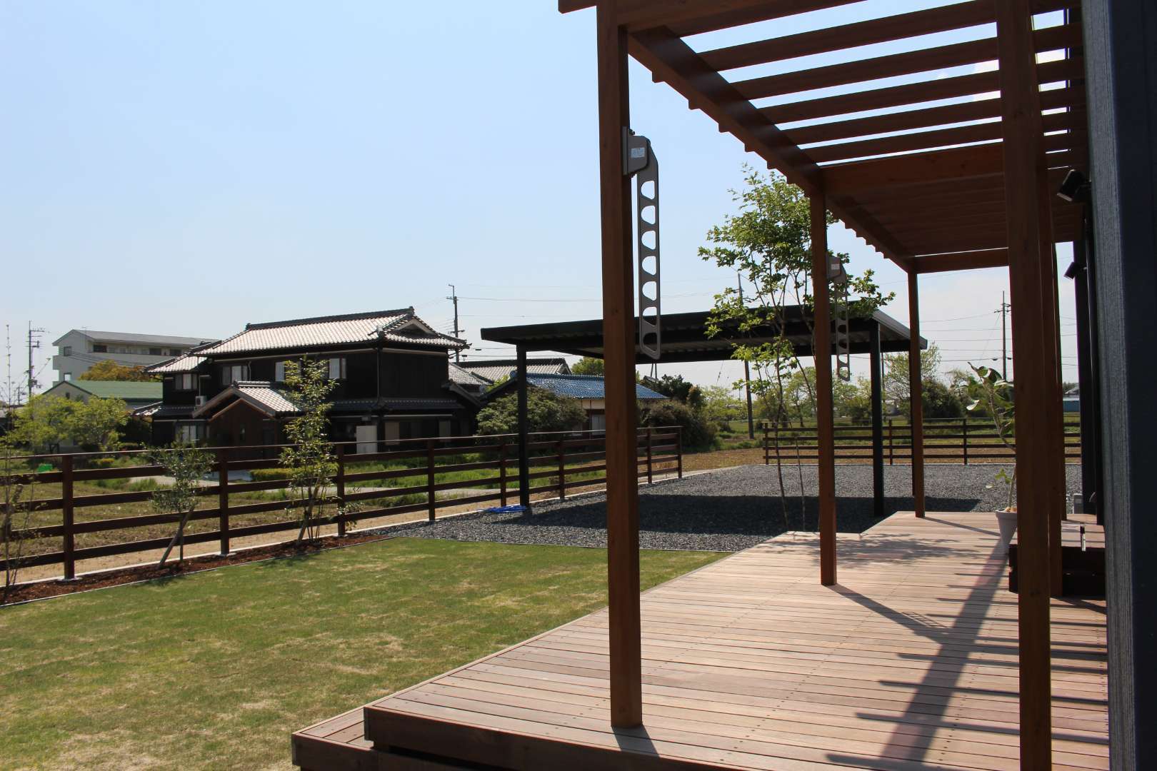 広々とした庭に芝生。ウッドデッキとの相性も抜群です。
