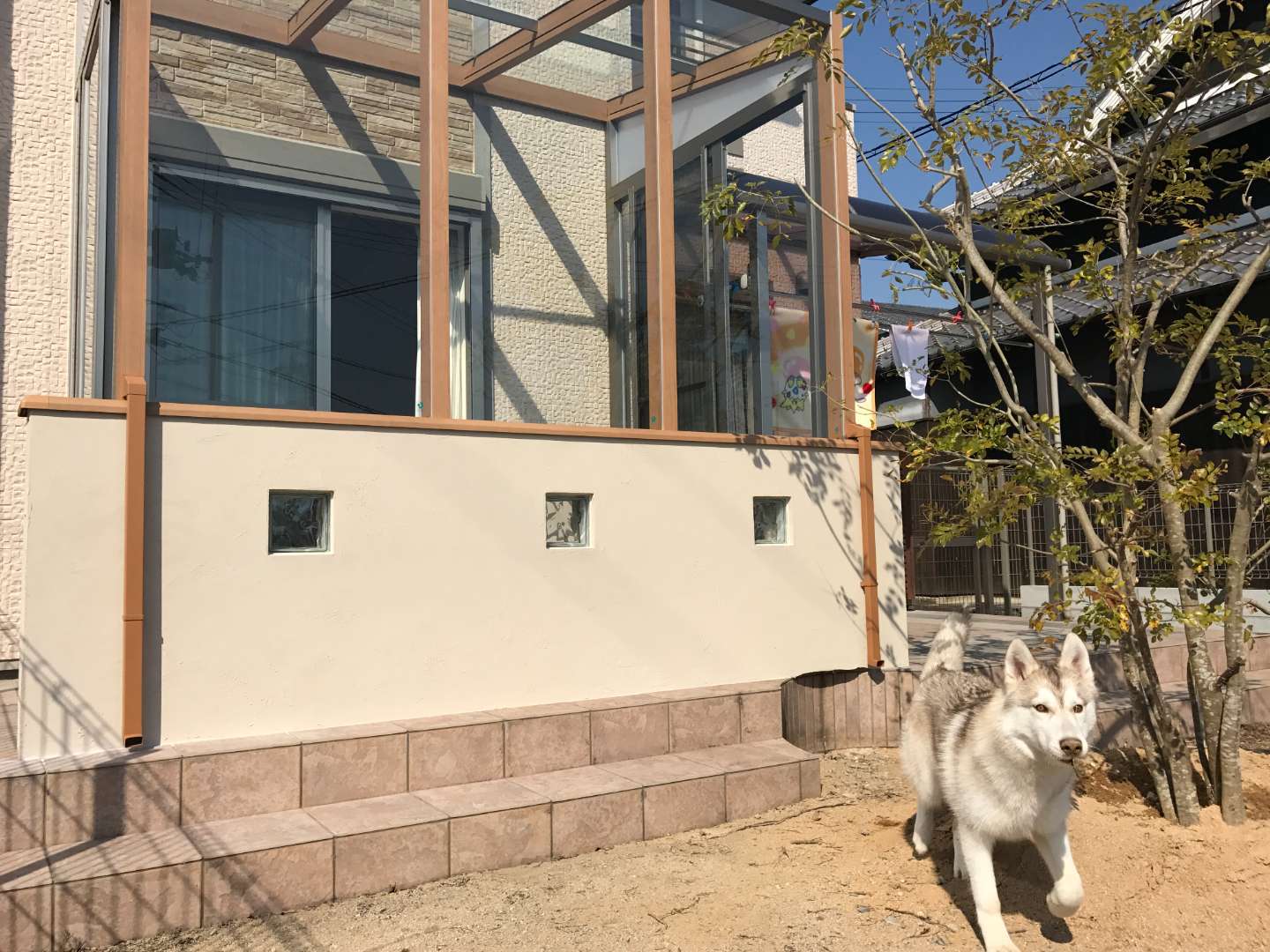 M様のお家ではわんちゃんを飼われていてワンちゃんとの生活を楽しむため、ガーデンルームとドッグランを設置しました。