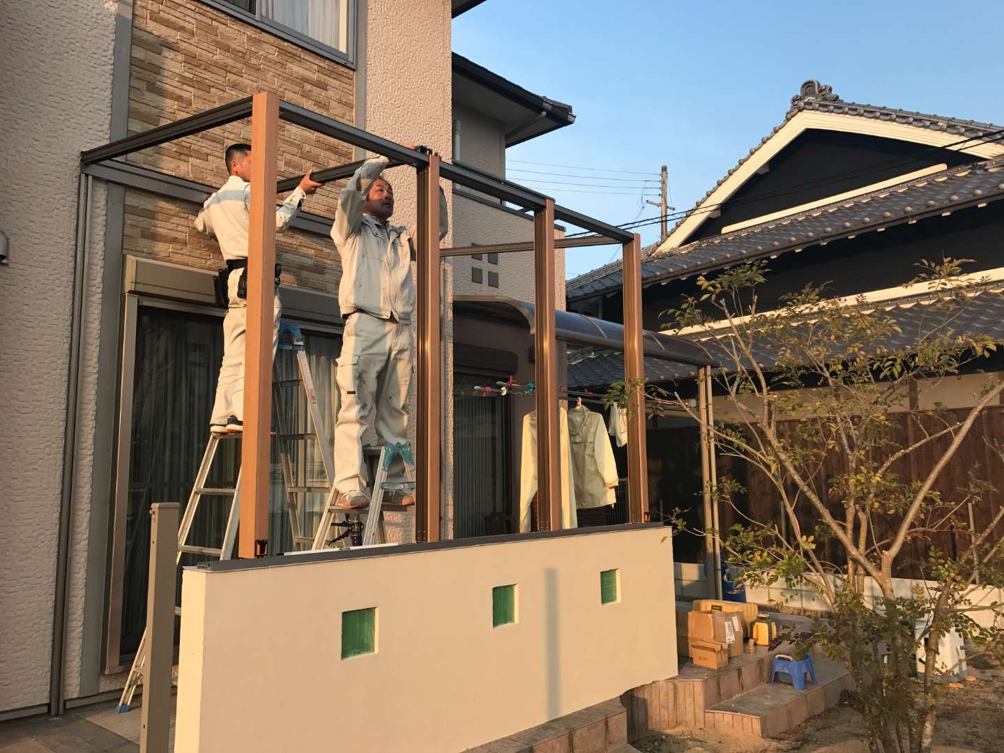 加西市外構工事M様邸、ガーデンルームココマ腰壁タイプ設置中です。
