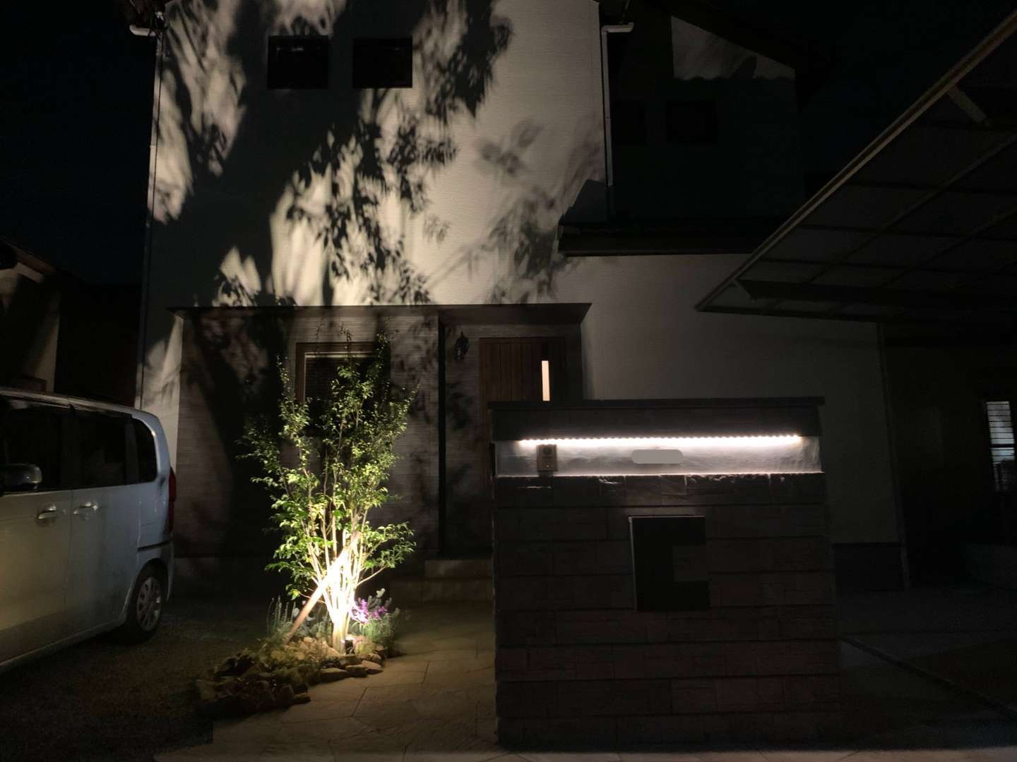 植栽にもアップライトをいれ、夜も素敵です