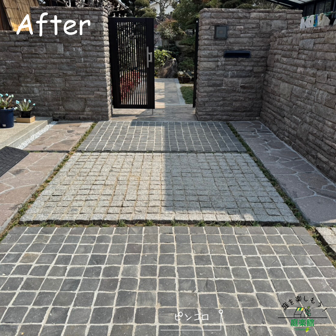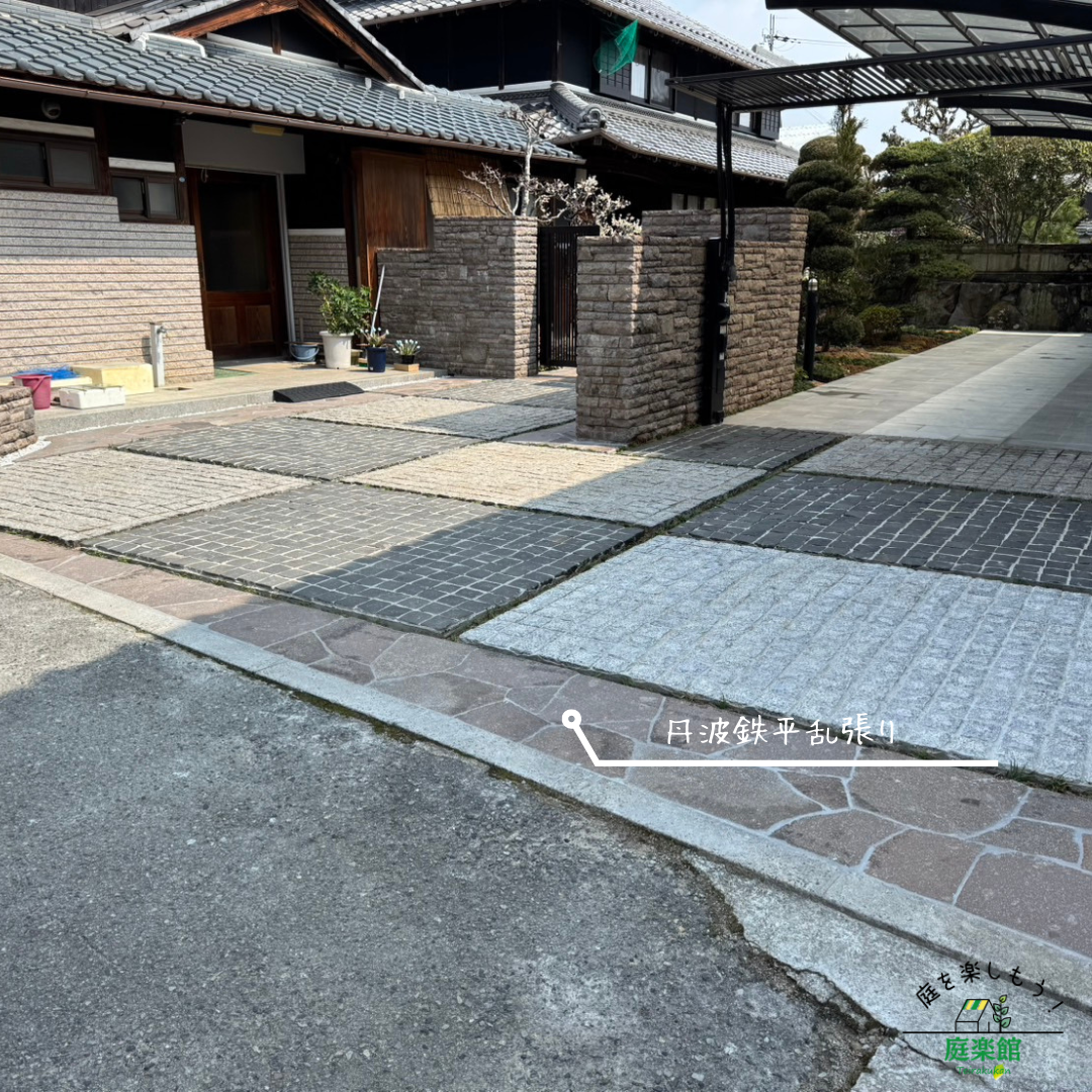 #アプローチリフォーム #庭楽館 #エクステリアデザイン #丹波石 #ピンコロ石 #乱張り #和モダン #外構工事 #暮らしを整える