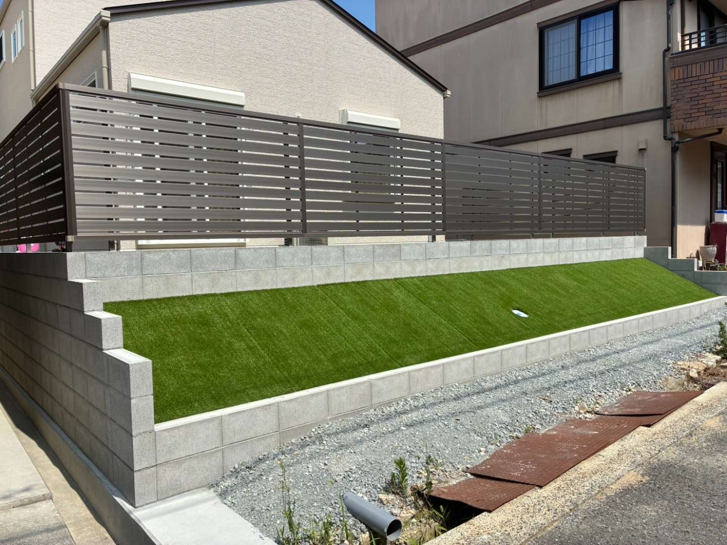 安全で快適に過ごせる外構にするためには、土留めブロックの施工と水はけを考慮した勾配設計が重要なポイントでした。