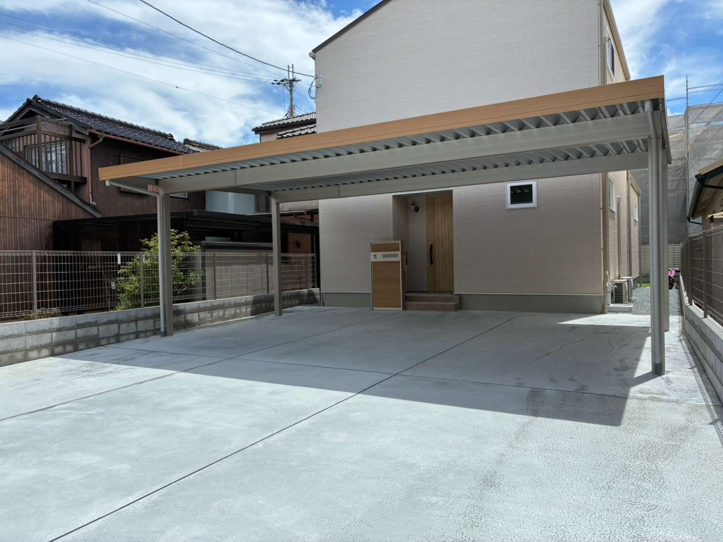 駐車場には、耐久性とデザイン性を兼ね備えたYKK「ジーポートPro 900タイプ」を設置。