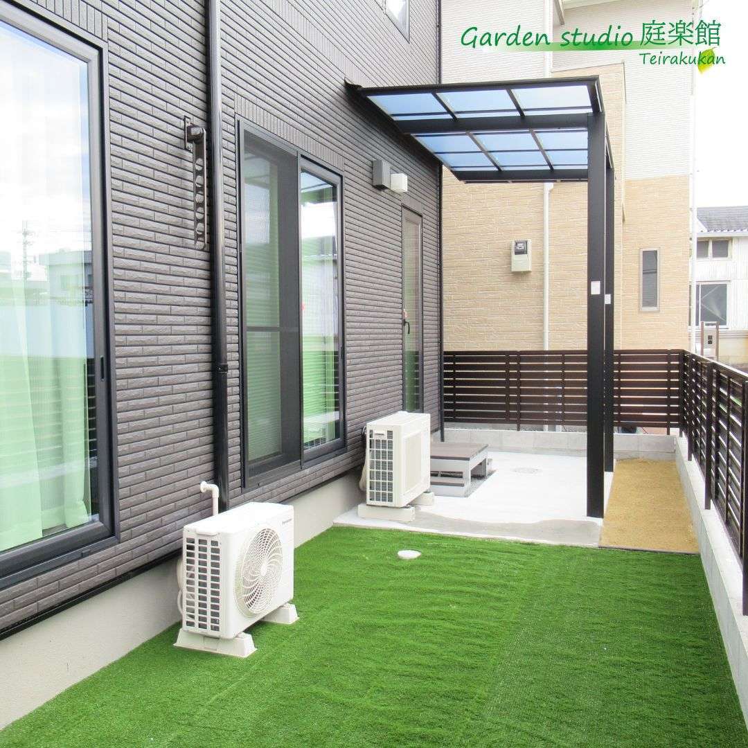 フラット屋根のデザインが建物と相性抜群で、