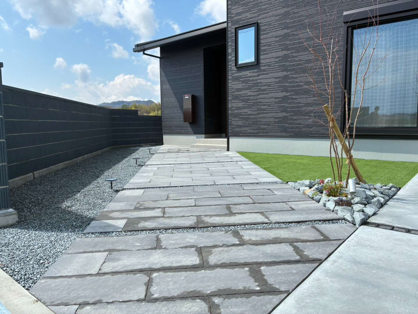 【施工例】加東市T様邸|ブラック外壁に調和するシンプルモダンな新築外構 🏡